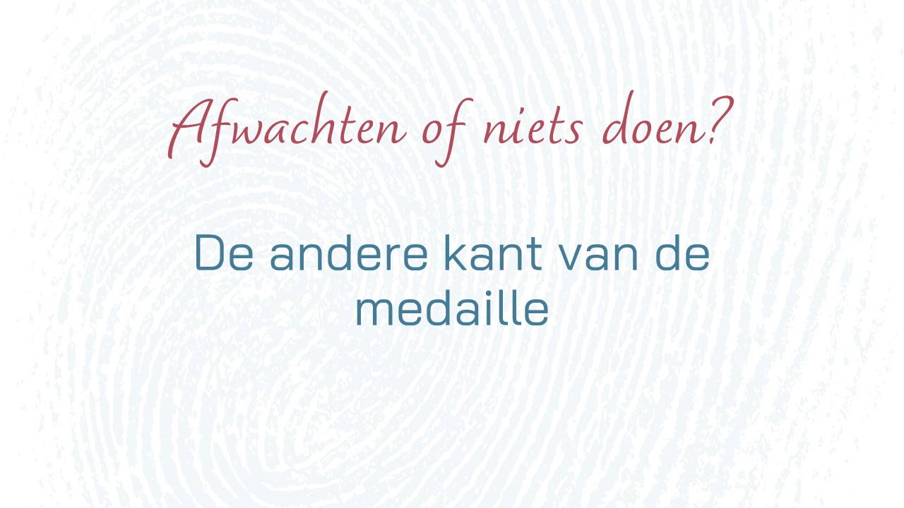 Door de ogen van deze patiënten is er niets positiefs aan niets doen. Niets doen staat voor hen synoniem aan verwaarlozing, aan verzuim om je te verdiepen in de klachten van deze mens en de puzzelstukken op een rij te zetten. Aan minachting voor de eigen wijsheid van een mens over zijn of haar lichaam.