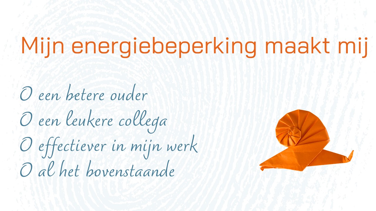 Ik ken veel (vooral) vrouwen die ander werk zijn gaan doen toen hun energie minder werd. Onder hun niveau, minder leuk, maar “hier kan ik 16 uurtjes werken en die verdelen over vier dagen en later beginnen en thuis werken en …”. Die 16 uurtjes kosten intussen bergen energie, want het werk is saai en de mensen vervelend.